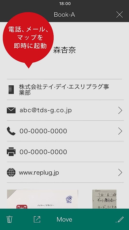 ■取り込んだ名刺情報から電話やメール、マップアプリを起動