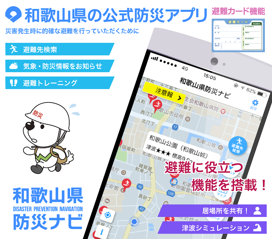 南海トラフ地震などの大規模災害時の的確な避難を促進するため、防災ポータルアプリ「和歌山県防災ナビ」を配信します。
