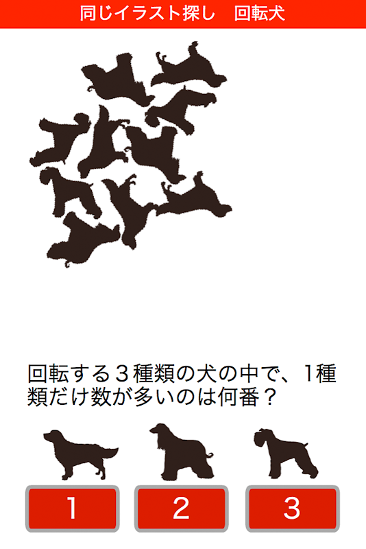 ★ 回転する「同じイラスト探し」問題が50問あります。
