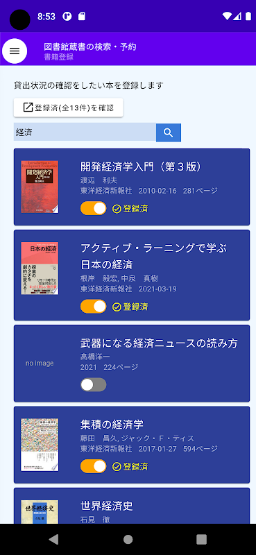 図書館や書籍をアプリに登録することで、いつでも手軽に蔵書状況の確認や予約操作を行うことができます。