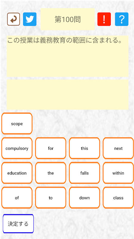 ③Выберите по порядку английские слова, соответствующие японским предложениям. Если вы допустили опечатку, нажмите кнопку «Отменить». После завершения ввода выберите «Подтвердить».