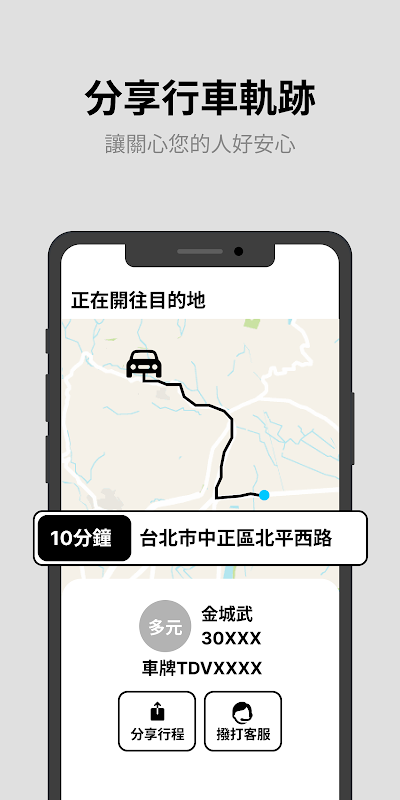 ● Ориентировочная стоимость проезда: Перед тем как такси, вы можете выбрать назначения в реальном времени по оценкам тарифа, функция ссылки. Для того, чтобы напомнить вам, из-за реальных туристических маршрутов, движения, остановки и так будет влиять на таблицу тарифа биллинг, взимать таблицу оплаты все еще преобладают.