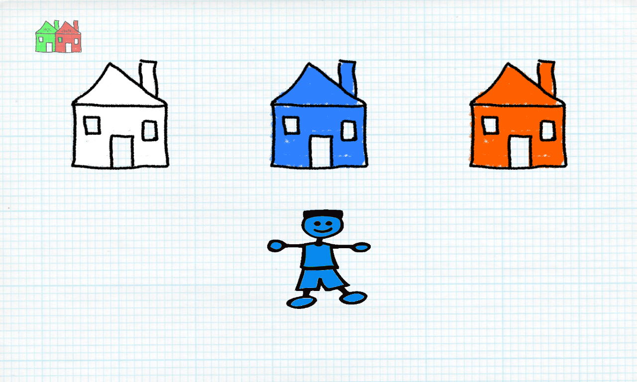 +同じ色で家の中に漫画のキャラクターをドラッグします