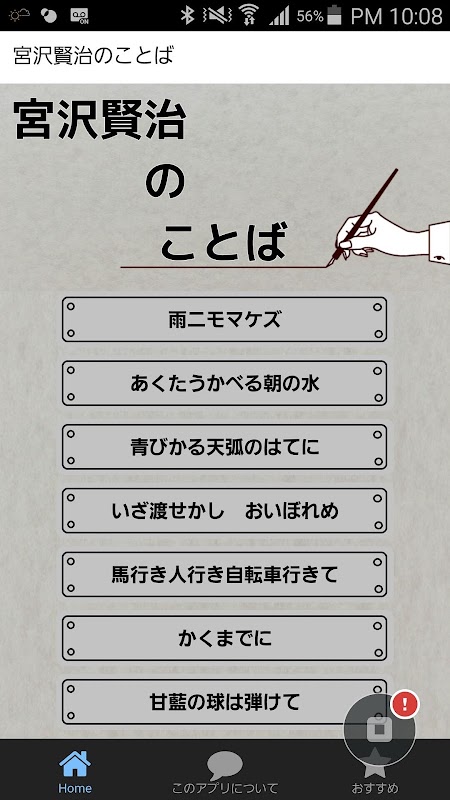 これは宮沢賢治の詩を集めたアプリです。