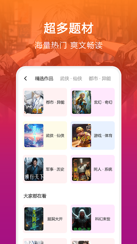 Классификация тем: установите пять основных категорий: боевые искусства и сказки, городская молодежь, исторические путешествия во времени, игровые соревнования, научная фантастика и сверхъестественное, чтобы облегчить точный поиск произведений.