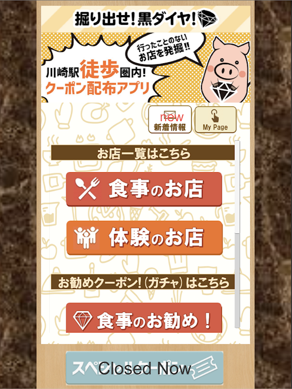 川崎駅徒歩圏内のクーポンアプリ【掘りだせ!黒ダイヤ!】 1.0.9