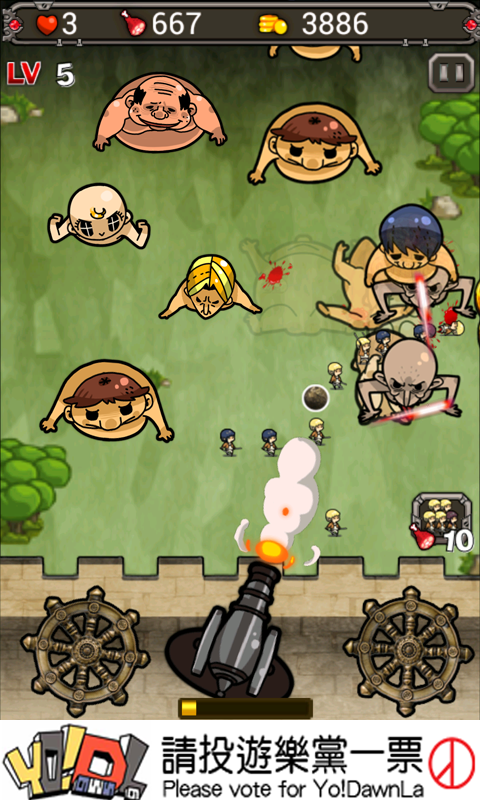 身為指揮官的你必須利用固定砲塔跟英勇的士兵們阻止巨人突破三道城牆。