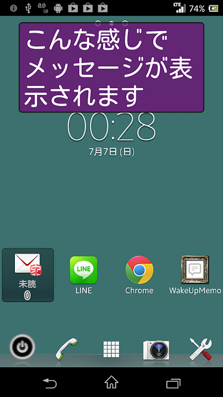 このアプリは、スマホを起動させた時に、自分で入力した好きなメッセージ(メモ)を表示できます。