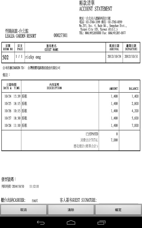 Дин Android Tablet Отели CI система, тесно интегрированная система ERP позволяет Дин C / O портативной техники.