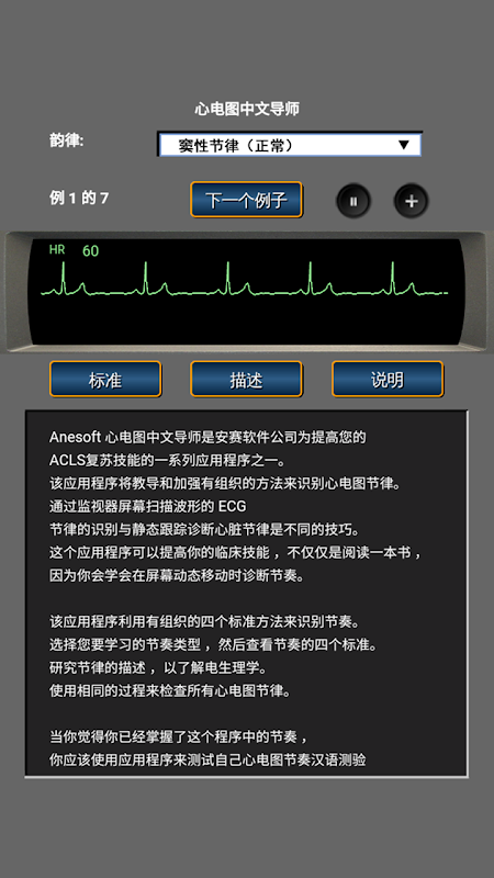 Когда вы почувствуете, что освоили ритм этой программы, вам следует использовать приложение, чтобы проверить свой собственный Anesoft «ЭКГ-ритм-китайская викторина».