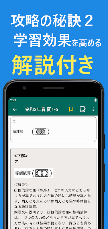 Основываясь на прошлых тенденциях в вопросах, утренний экзамен Applied Information Technician содержит много вопросов, которые являются такими же или похожими на предыдущие вопросы. Основываясь на тенденциях экзаменационных вопросов за последние 10 лет, мы реализовали это в приложении, чтобы вы могли сразу увидеть год, в котором могут появиться те же вопросы. Изучая в соответствии с учебным планом этого приложения, сосредоточив внимание на важной проблеме с отметками, вы сможете быстро пройти стандартный балл (60 баллов) утреннего экзамена.