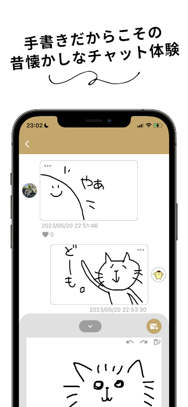 Это приложение общается с помощью нарисованных от руки иллюстраций. В отличие от LINE, вы не можете использовать текст для общения, и вы в основном общаетесь, рисуя картинки.