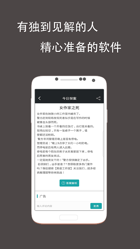 -你有新的点子,可以再社区发表自己的案件,让大家来评论解谜,增加乐趣。