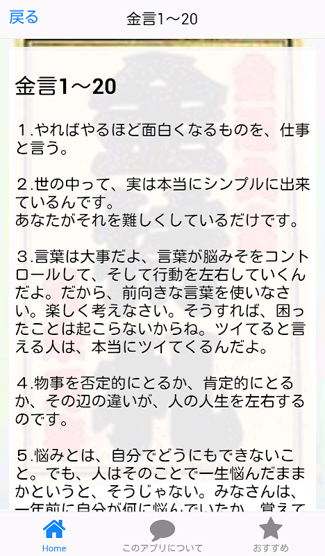 事業家の斉藤一人さんの金言をたくさん集めていつでも見れるようにアプリにしてみました。
