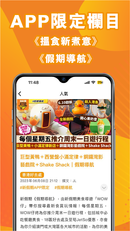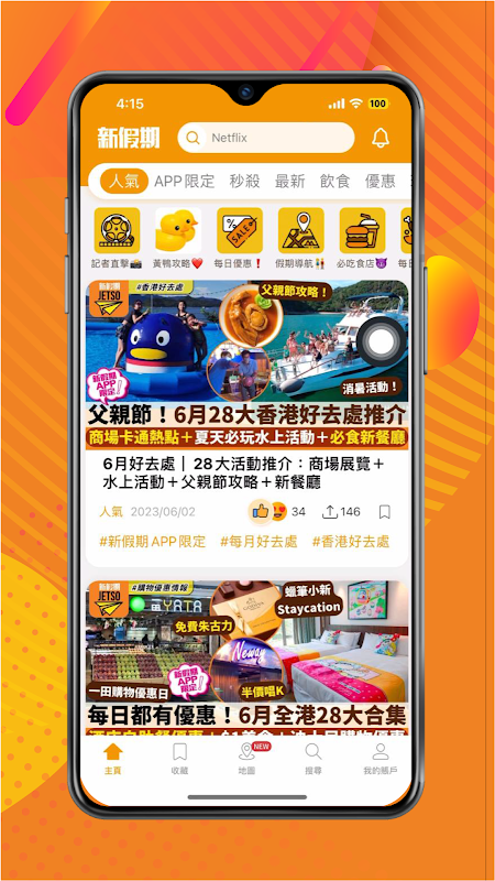 Приложение «Новые праздники» собирает самую свежую информацию о еде в Гонконге и за рубежом, покупках, скидках, развлечениях, путешествиях, развлекательных новостях и многом другом.