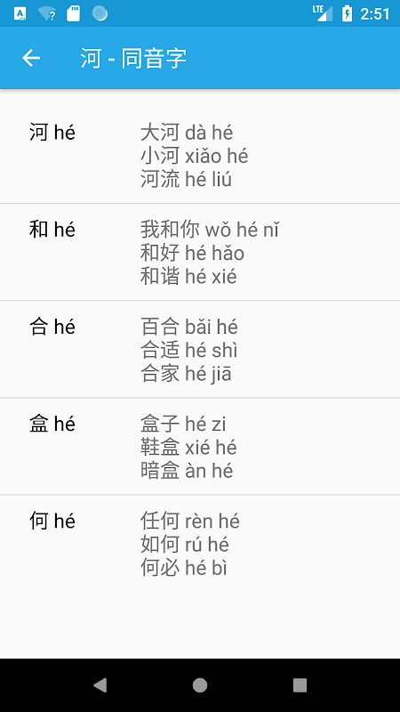 3. Все персонажи приходят с пиньинь, словами и произношением;
