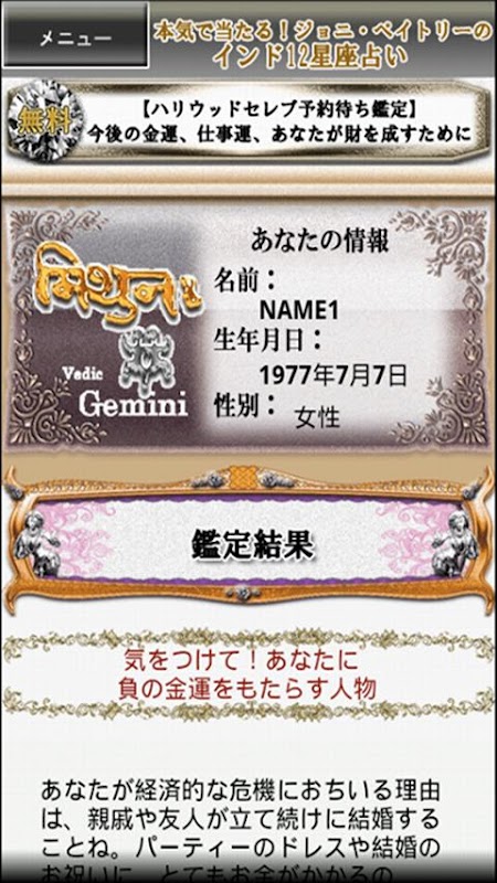 Информация 本気で当たる!奇跡の「インド12星座占い」 APK