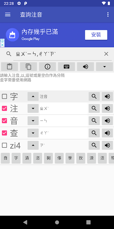 +注音查字:輸入注音查國字