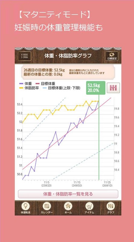 Вы можете эффективно соблюдать диету. Оснащен графиком жира в организме и функцией расчета ИМТ.