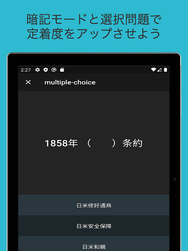 入試頻出の日本史の知識(主に年号・事件・人物)を獲得するためのアプリです。基礎から応用まで重要な事柄を網羅、センター試験・私大入試にも対応。