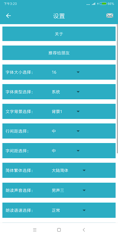 3. 优化了听书功能。听书功能采用手机系统本身的语音合成功能。