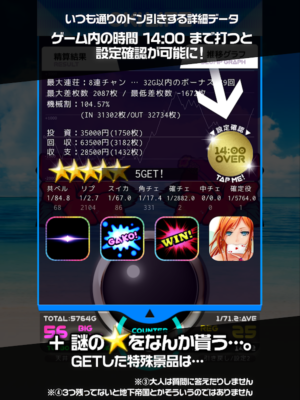 独自の解析を基に忠実に再現した沖スロ アプリです 美麗なハイビスカスの光に南国少女もドッキ ドキ! 6つの設定と9つのモードを搭載した本格 沖スロ アプリです!
