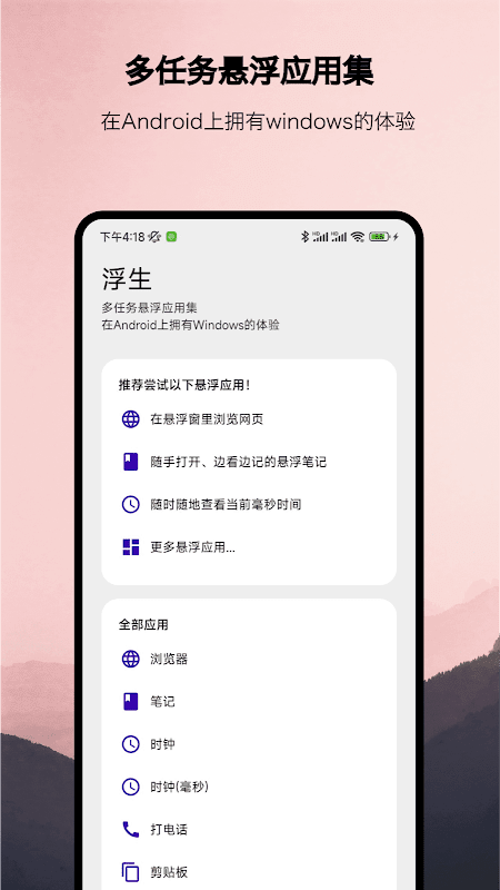 Oписание 浮生 - 多任务悬浮窗、小窗应用集