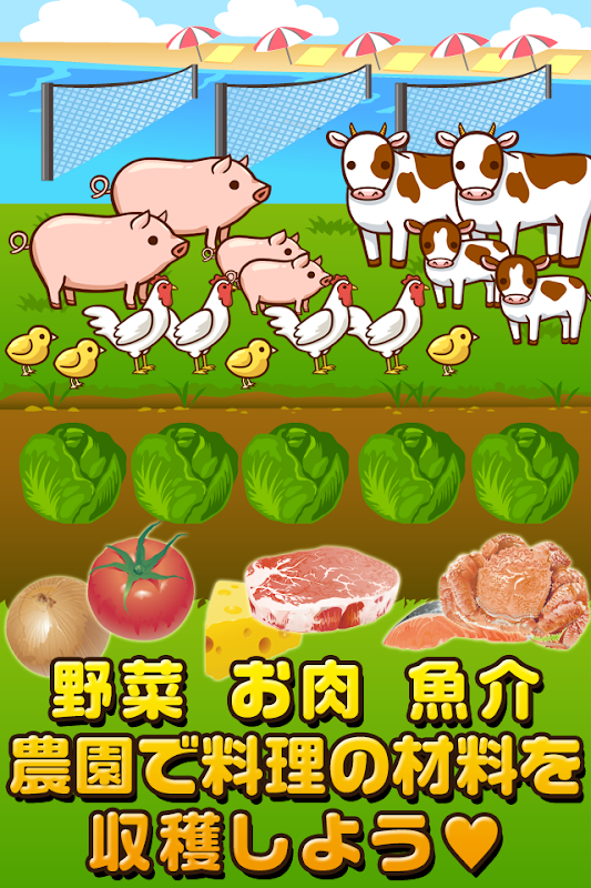 1.農園で料理の食材を収穫する(小麦とか卵とかエビとか)