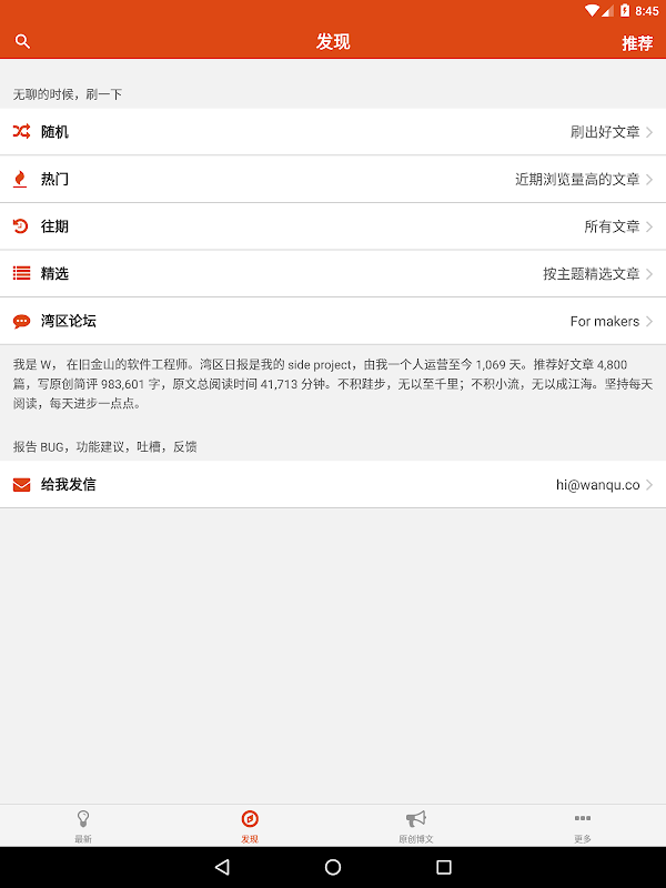 1. Maker:我坚信,优秀的 makers(工程师、设计师等)要读的优质内容必须由同样是 makers 的人来挑选,而不是由那些非 makers 的小编复制粘贴、应付任务式的拼凑。湾区日报是 "by makers, for makers",是由一个 Maker(我)独立运营的。