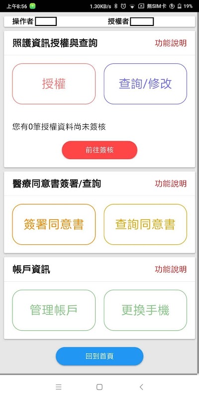 2.照護資料修改:您可以隨時變更您的授權內容、對象及人員。