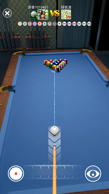 『菜鸟大师』独有大师视角模式,彻底优化触屏操作。3D台球游戏终于可以比2D游戏更精确的瞄准了!