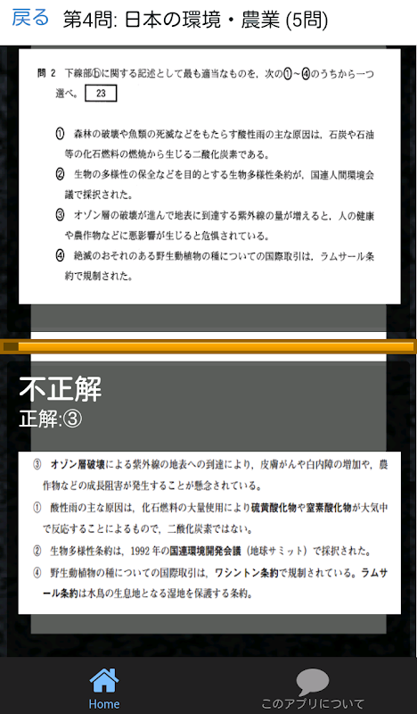 ※ 実際の問題では選択肢が8択まであるものもありますが、アプリのシステム環境の都合上、問題の選択肢は最大で5択までとなっております。