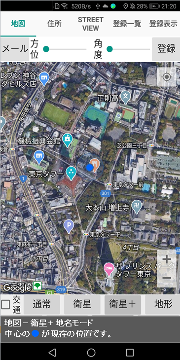 3.STREETVIEWは、現在位置でのストリートビューが表示されます。