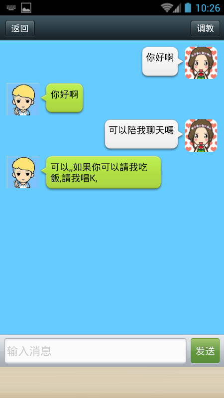 男友陪伴聊天是一款趣味性十足的戀愛休閒類遊戲,遊戲中玩家可以選擇自己的手機虛擬男友,採用短信的形式和各種各樣的美男子進行交流,他會稱讚你,在任何你需要的時候和你聊天....哦,他是那麼的浪漫!他可能會說一些錯誤的東西,但他會學習,而且,他永遠不會忽視你。
