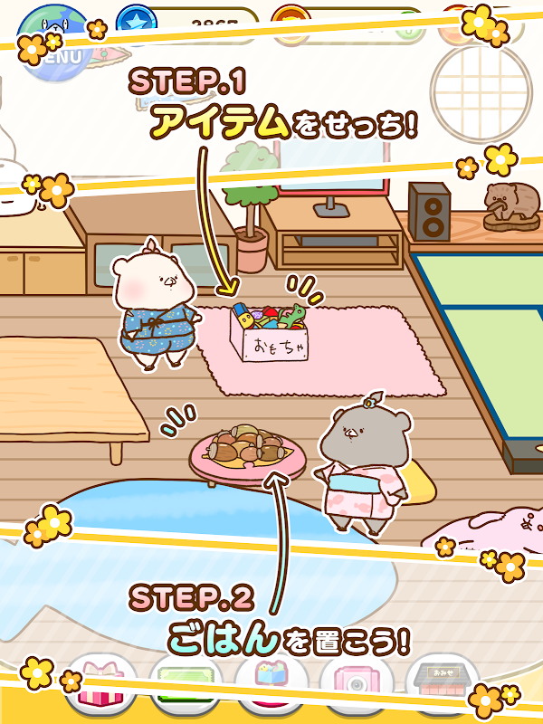Расставляйте предметы и рис, ждите медведя, расслабляйтесь, расслабляйтесь и выходите из игры! Появляется более 300 видов медведей.