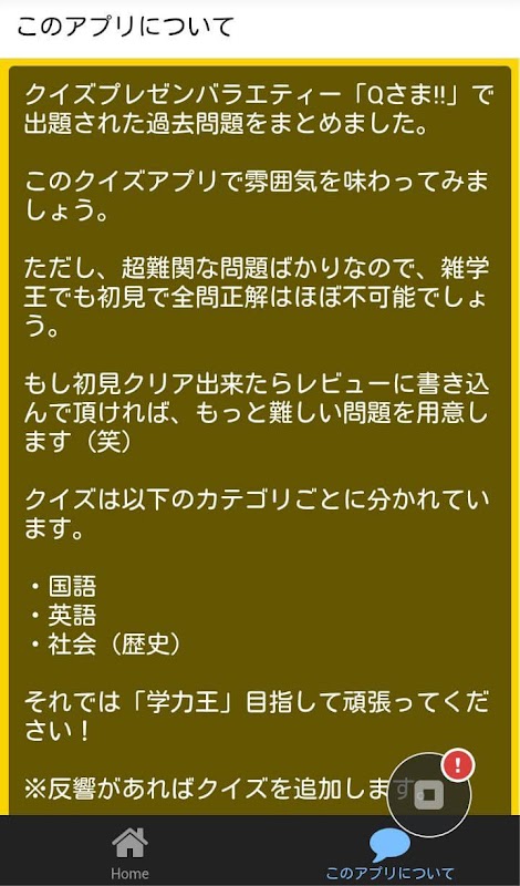 ※当アプリは番組とは一切関係のない「Qさま!!」ファンによる非公式クイズアプリです。