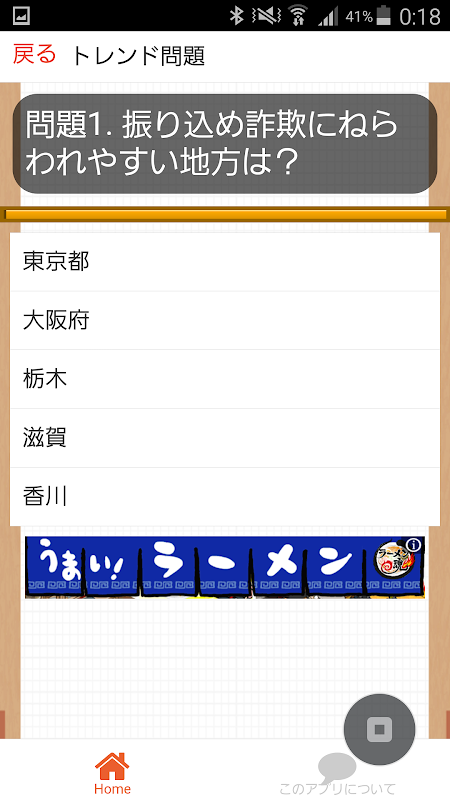 このアプリは、各都道府県の統計学をもとに作成した非公式のクイズアプリです。豆知識!面白いクイズ?と思う部分や地元愛(ジモト愛)があればぜひ見てみてください。