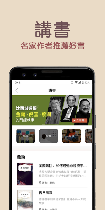 «Чжишу» - первая в Гонконге платформа для чтения аудио. Он объединяет «чтение», «аудирование» и «обучение», чтобы удовлетворить потребности городских жителей в чтении, создать новый опыт и сцену чтения, а также предоставить читателям услуги по обучению «от уха до уха» и «по душам».