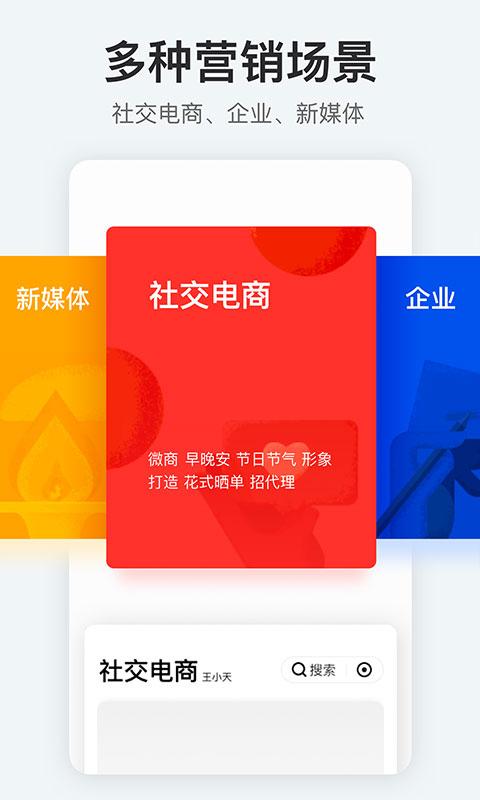 稿定设计(天天向商)是时下热门的兼顾小视频与图片制作的全面型工具APP,无需复杂操作就能帮你一键生成创意小视频、快速制作精美图片海报,助你引爆微信、抖音、快手;