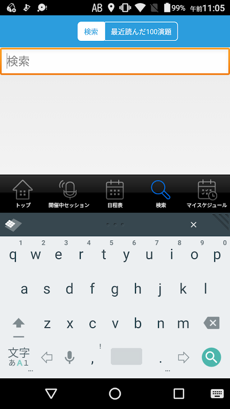 会期中、その時刻に発表されているセッションが一覧表示します。