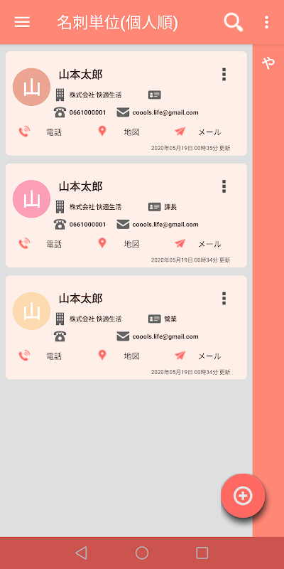 AI搭載の名刺管理アプリです。 自動スキャンした名刺より文字抽出し、各種分類に自動振り分けできます。 電話、メール、マップ検索等すばやくアクセス可能です。