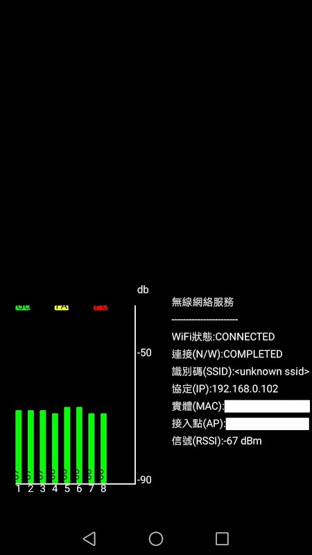 Это приложение предоставляет диаграмму RSSI для последних 10 банкнот, чтобы показать, что сигнал AP, к которому вы подключены, усиливается или ослабевает. Его можно использовать для проверки одноименного идентификатора настройки службы (SSID), РОУМИНГ. Обстоятельства. Это может также может использоваться для проверки способности маршрутизатора (МАРШРУТИЗАТОРА) проникать в стену.