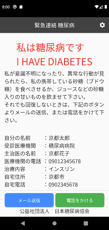 Это приложение, которое может отображать контактную информацию для экстренных случаев, когда вы не можете объяснить свое состояние из-за гипогликемии.
