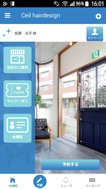 このアプリでは、Ciel HAIR DESIGNの色々な情報やアプリユーザー限定のお得なサービスが入ります。