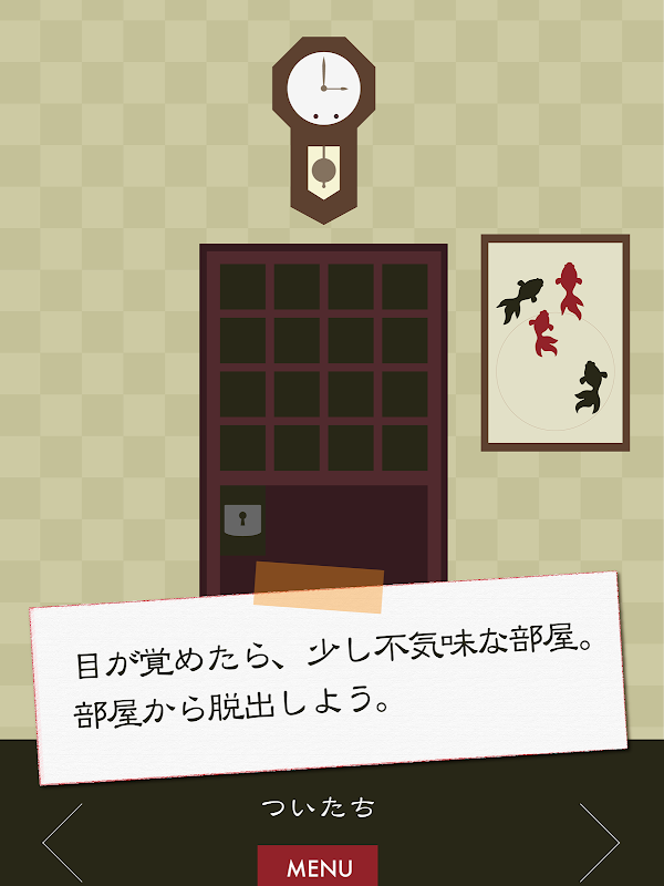 扉は鍵が閉まっていて部屋からは出れません。様々な場所に隠された鍵を見つけて