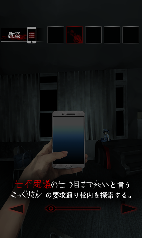 ●こっくりさんの要求通りに七不思議の七つめへ向かうホラー脱出ゲーム。