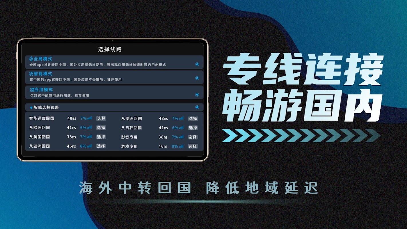 Охвачено большим количеством транзитных узлов по всему миру, интеллектуально идентифицируйте приложения, возвращающиеся в Китай, не влияя на нормальное использование зарубежных приложений;