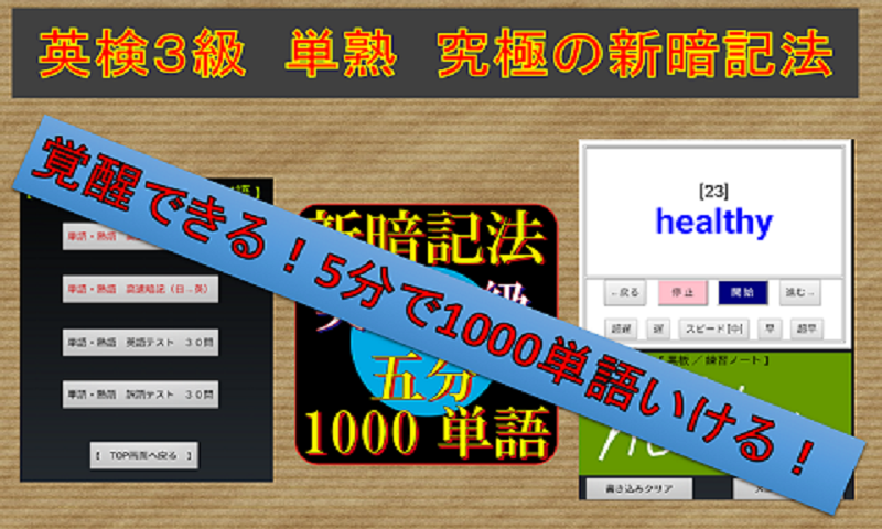 英検3級 英単語熟語 究極の新暗記法をアプリで実践! 5分で1000単語を可能とします。 高速システム暗記法で、すさまじい語彙力のアップにつながります。
