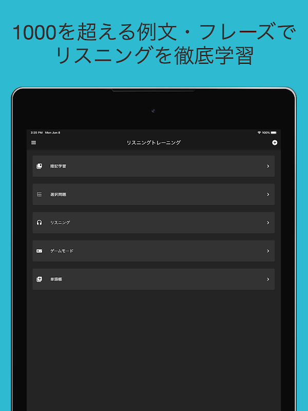 英語が苦手な方・英語初心者の方がリスニング力を鍛えるためのアプリです。英検5級〜2級、中学・高校レベル、旅行会話・海外出張、TOEIC400点〜730点レベル