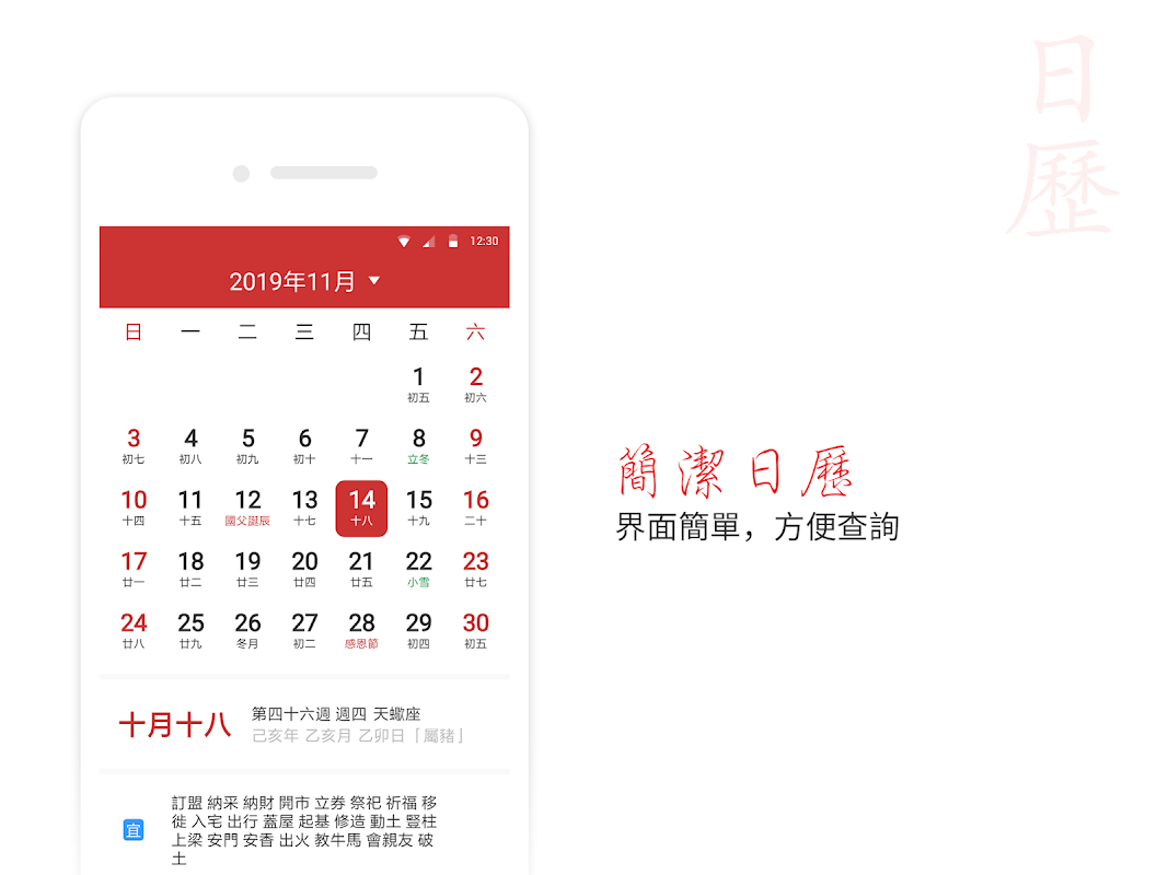 Информация 萬年曆-日曆老黃曆農民曆黃道吉日放假調休安排 APK